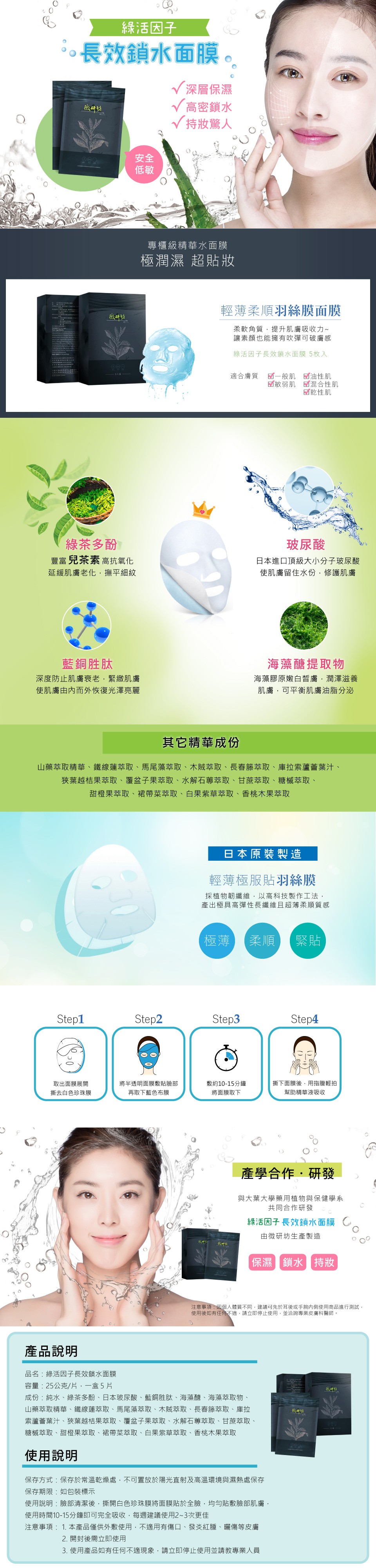 綠活因子 長效鎖水面膜